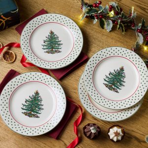 Spode Christmas Tree Collection, Polka Dot – Dessert Plates, 4-pieces