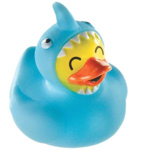 Shark Costume Rubber Duck Toy Favours, Blue/Yellow, 16-pk, for Birthday/Summer/Party Favour