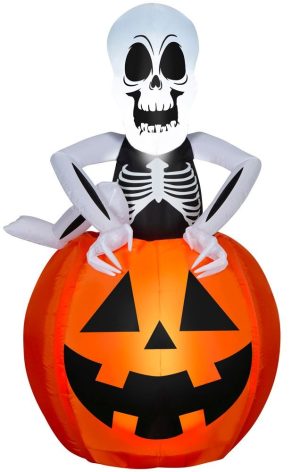 Gemmy Animated Airblown Rising Skeleton in Jack-O’-Lantern Inflatable Outdoor Yard Décor, 5-ft