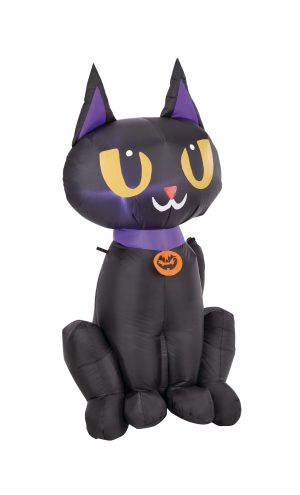 Gemmy Cat LED Light-Up Airblown Inflatable with Stakes, Black, 3.5-ft, Self Inflating Outdoor Decoration for Halloween
