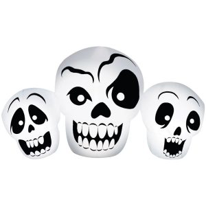 Gemmy Airblown Flashing Skull Trio Inflatable Outdoor Yard Décor, 3.87-ft, White