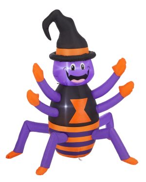 For Living Spider LED Light-Up Airblown Happy Inflatable, Purple, 4-ft, Self Inflating Outdoor Decoration for Halloween