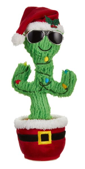 Animated Dancing Musical Christmas Decoration Twisting Cactus, 13-in