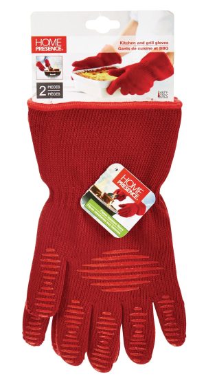 Trudeau Maison Kitchen and Grill Gloves, Oven Mitt Set, Non-Slip Grip, Red, 2pc