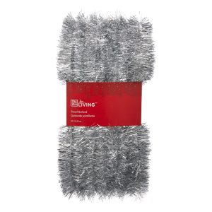 For Living Christmas Decoration Tinsel Garland, Silver, 50-ft