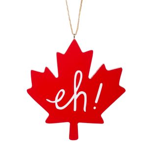 CANVAS Red Collection Wooden Decoration “EH” Maple Leaf Christmas Ornament, 5 1/2-in