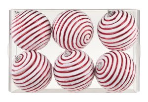 CANVAS Santa’s Workshop Collection Red and White Swirl Shatterproof Balls, 80-mm, 6-pc