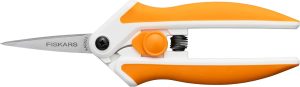 Fiskars Micro-Tip Spring Assisted Scissors, Precision Cutting Stainless Steel Blades, Comfort Handle, Cut Details in Fabric, Sewing Scissors and Arts and Crafts Tools