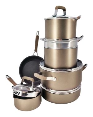 PADERNO Classic Cookware Set, Non-Stick, PFOA-Free, Oven Safe, Champagne Bronze, 12-pc