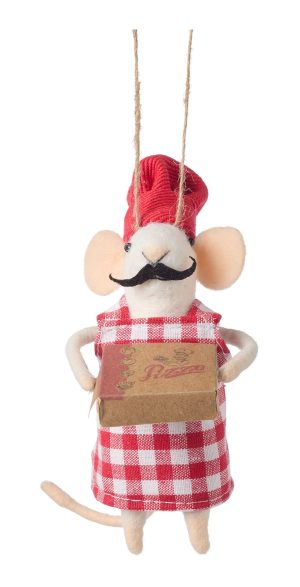 CANVAS Merry Mingle Collection “Mario” Felt Mouse with Pizza Box Christmas Ornament, 5.1-in