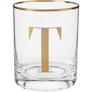 Life at Home Monogram Double Old Fashioned Glass – Letter T