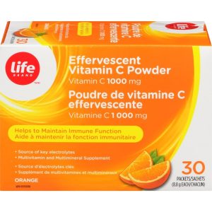 2-Pack Life Brand Effervescent Vitamin C Powder 1000Mg, 30 Packets, Orange