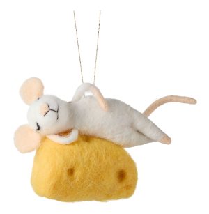 CANVAS Merry Mingle Collection “Brie” Felt Sleepy Mouse On Cheese Christmas Ornament, 3.5-in