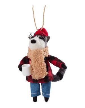 CANVAS Canadian Christmas Collection “Rocco” Felt Raccoon with Glasses and Coffee Mug, 5.3-in
