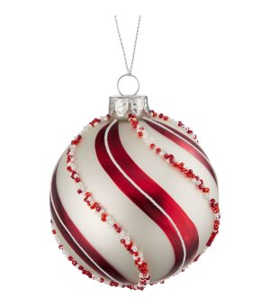 CANVAS Santa’s Workshop Collection Peppermint Ball Ornament with Beads, 80-mm