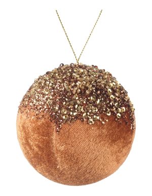 CANVAS Holiday Homecoming Trend Collection Velvet Brown Ball Christmas Ornament with Sequin Top, 80-mm