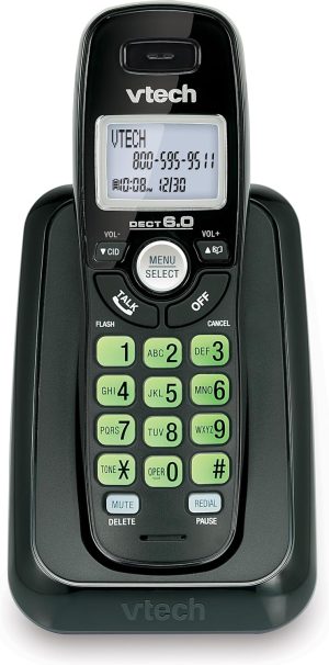 Vtech Dect 6.0 Single Handset Cordless Phone with Caller ID, Green Backlit Keypad and Display (CS6114-11)