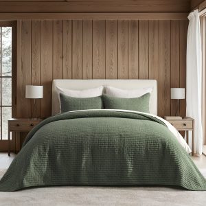Evergrace Cross Stitch Cotton Quilt Set King Green