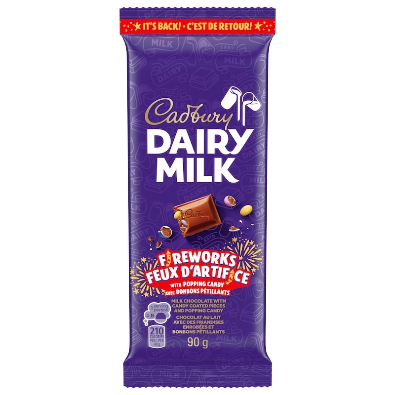 - FULL OF FUN: CADBURY DAIRY MILK Fireworks Chocolate & Popping Candy bars are loaded with fun. Experience the crackle of tasty popping candy and CADBURY DAIRY MILK milk chocolate in every bite. It’s an adventure for your taste buds!
