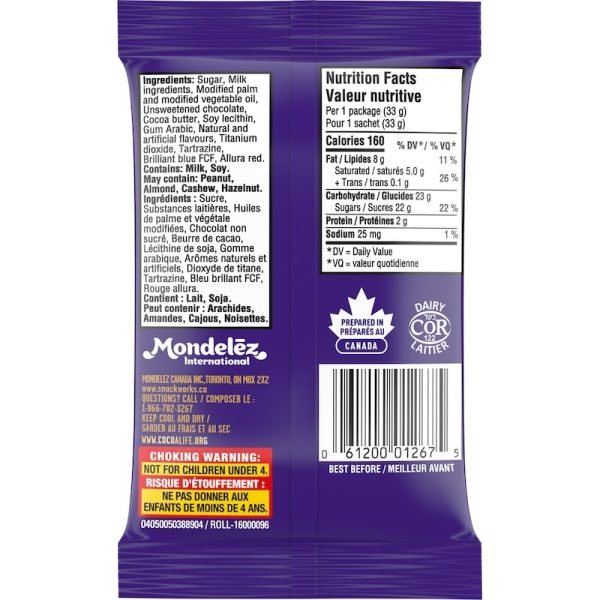 A delicious treat whether you’re sharing or treating yourself, enjoy Cadbury Mini Eggs’ crispy candy shell in bite-sized pieces. Fill candy bowls for parties, add to Easter eggs and baskets, and incorporate them into your favourite baked treats like cookies, brownies, and more. Cadbury is 100% sustainably sourced cocoa. Cocoa Life is our sustainable cocoa sourcing program that does good by encouraging responsible farming, and by helping fight deforestation and support cocoa farming communities. This pack includes one 33 g bag of Cadbury Mini Eggs.
