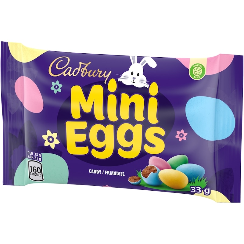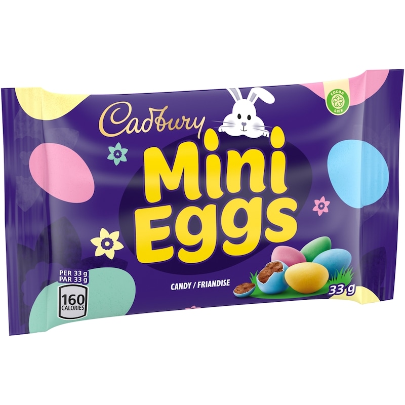 - This pack includes one 33 g bag of Cadbury Mini Eggs. Prepared in Canada.