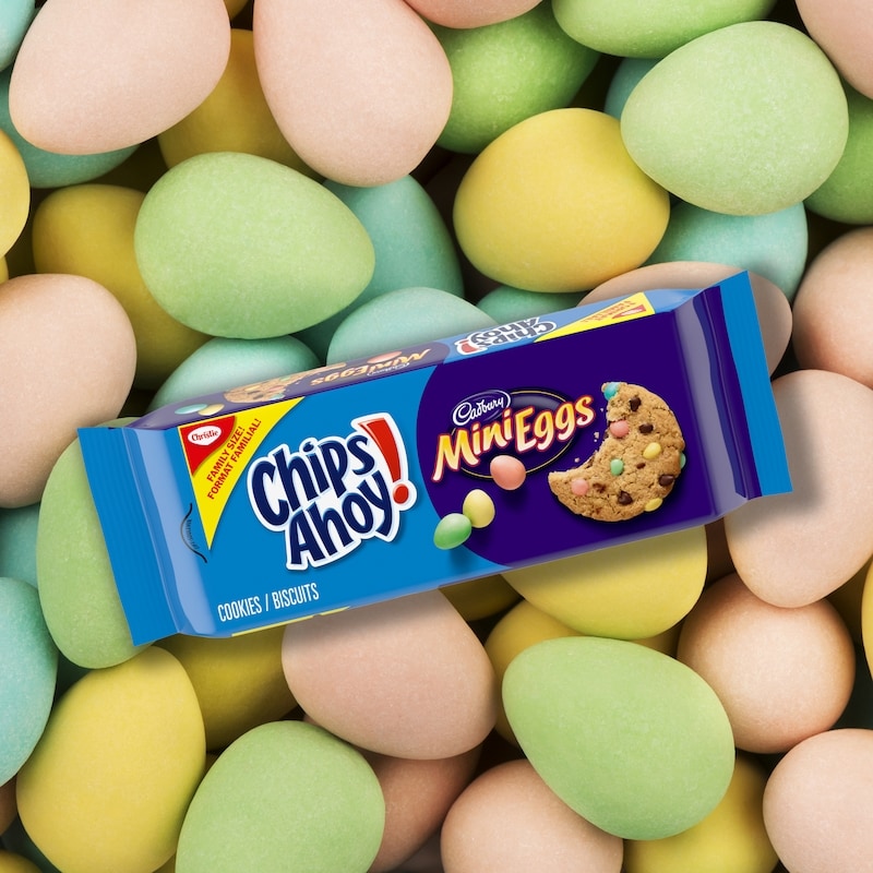 - Resealable 460g pack of CHIPS AHOY! CADBURY MINI EGGS Cookies.