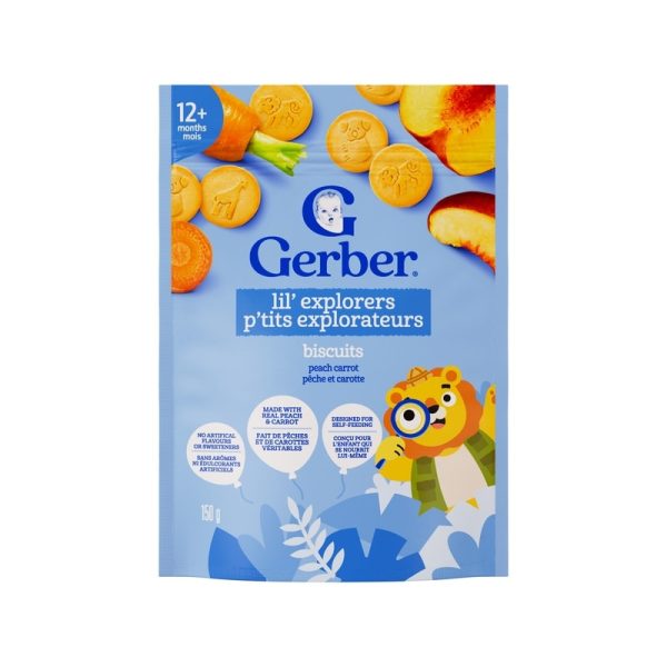 - Let’s Snack & Play!: GERBER Lil’ Explorers Peach Carrot biscuits capture your baby’s playful imagination with playful animal shapes and their taste buds with a yummy fruity flavour