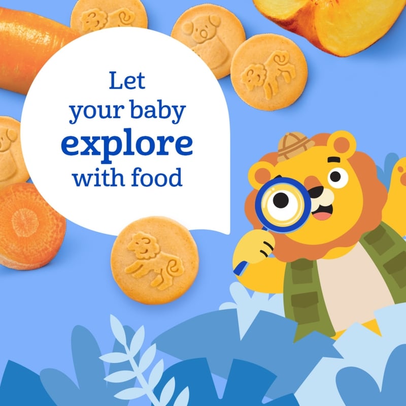 - Let’s Snack & Play!: GERBER Lil’ Explorers Peach Carrot biscuits capture your baby’s playful imagination with playful animal shapes and their taste buds with a yummy fruity flavour