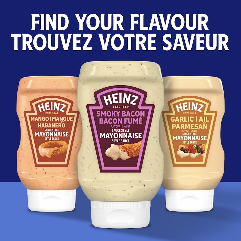 Dip into flavour with Heinz Pickle Mayonnaise Style Sauce. Heinz Pickle Mayonnaise Style Sauce combines tangy pickles and creamy mayonnaise for a bold taste that elevates every bite. Go ahead and layer that flavour! Perfect texture for dipping, dunking and drenching. Our pickle mayonnaise style sauce is ideal for chicken wings, fries, onion rings, chicken nuggets and more. Heinz Mayo Products aren’t just dip-worthy. They’re dunk-it, drench-it, can’t-get-enough-worthy. Made with no artificial flavours or colours, our sauce comes in a 340 mL bottle that’s perfectly sized and keeps every dip fresh tasting. Dip a little, dunk a lot and explore our variety of outrageously delicious mayos from the flavour master. It has to be Heinz.