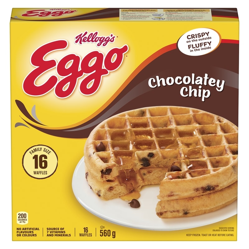 Get a sweet start to your morning with Eggo Chocolatey Chip waffles. They have a light, crispy texture and a yummy chocolatey taste that makes eating breakfast a real delight!