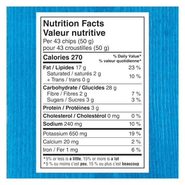 - Snack Stats — These potato chips are guaranteed fresh, contain no artificial flavours or colours, and have zero trans fat; they’re also certified Kosher and made in Canada from domestic and imported ingredients.