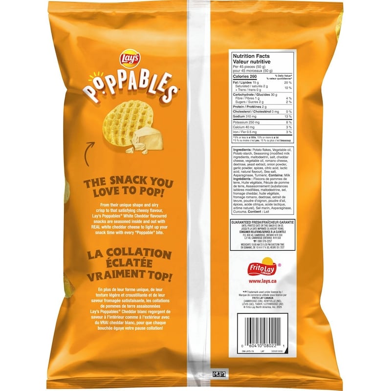 - Guaranteed Fresh — You can always count on Lay’s Poppables potato snacks to pack delicious taste and crispy crunch, made with flavourful ingredients.