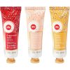 Pamper your skin with this trio of rich shea butter hand creams featuring three irresistible holiday scents: Warm Vanilla, the icy-sweet scent of Peppermint Swirl and the the toasty, marshmallow-like aroma of Champagne Bubbles will all delight your senses. This luxurious hand sweet sparkling citrus notes of cream will leave your skin feeling soft, smooth and replenished. Also enriched with coconut oil, vitamin E, d hyaluronic aci † , aloe vera, and cocoa butter.