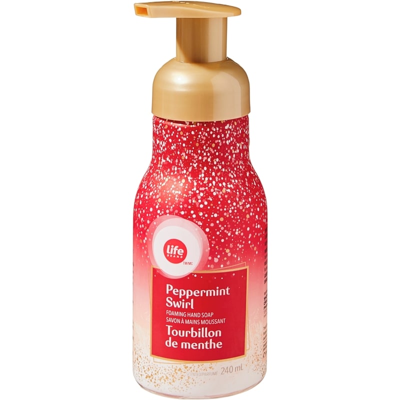 Perfect for the holidays, Peppermint Swirl Scented Foaming Hand Soap leaves hands feeling clean and nourished. This candy cane-inspired foaming hand soap features a refreshing and icy-sweet aroma.