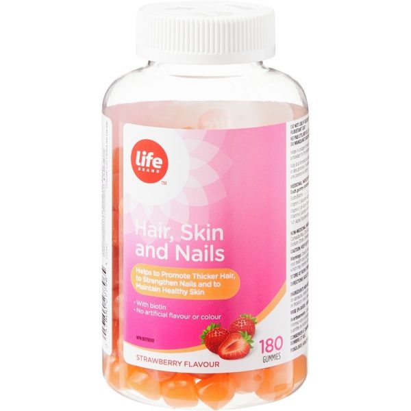 Strawberry Flavour Hair, Skin, and Nails 180 Gummies helps to promote thicker hair, to strengthen nails, and to maintain healthy skin. With biotin, these gummies contain no artificial flavour or colour.