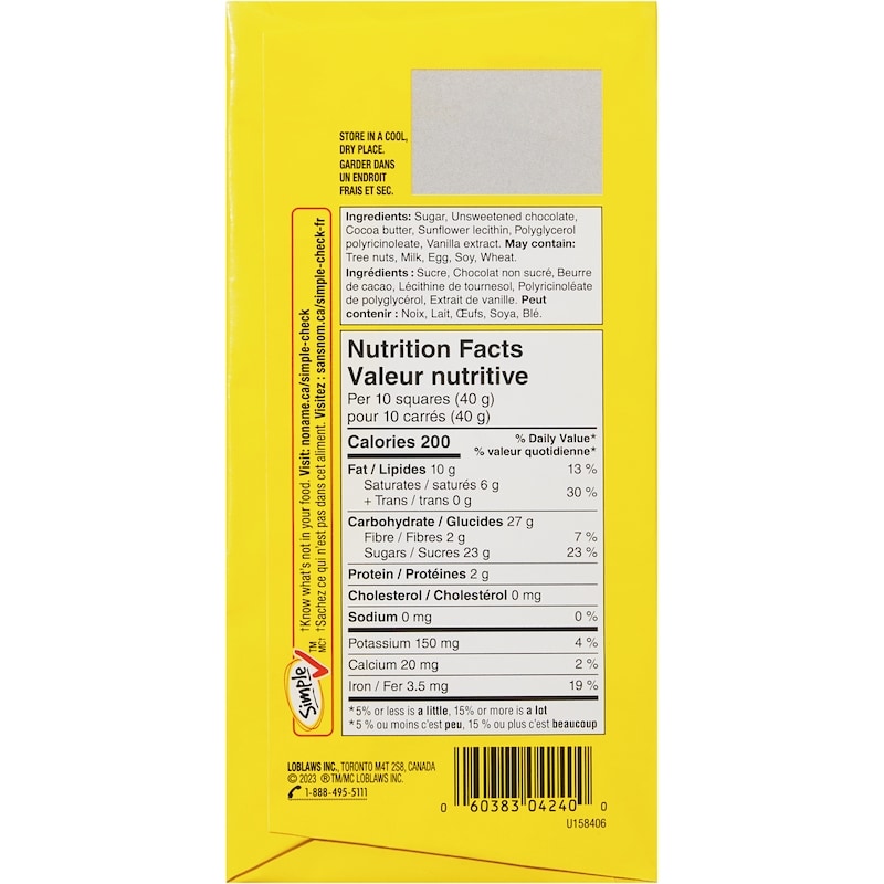 The †Simple Check™ symbol appears on no name® products made without 10 ingredients such as synthetic colours*, artificial flavours and artificial sweeteners. *As defined in Canadian regulations. To learn more visit noname.ca/simplecheck