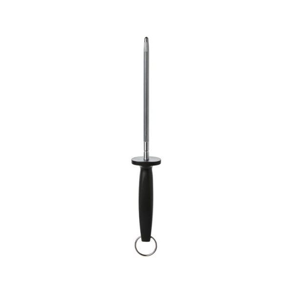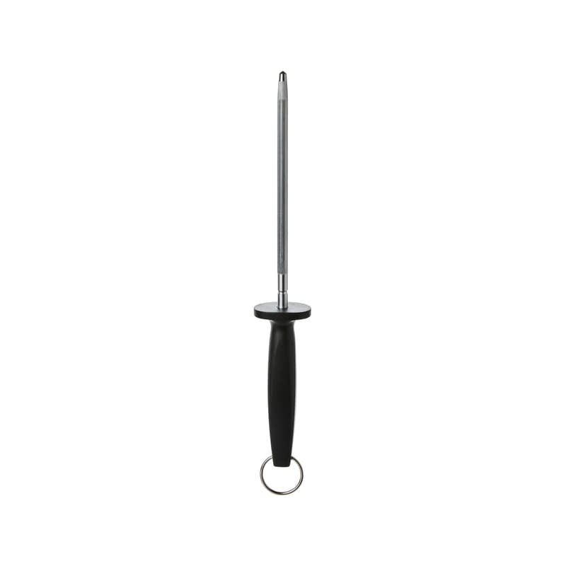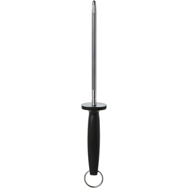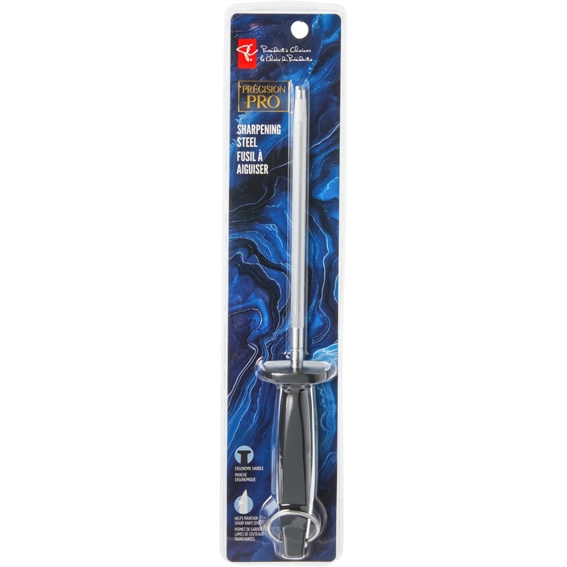 Our Precision Pro Sharpening Steel helps maintain sharp knife edges. Made with durable carbon steel, it features an ergonomic handle to ensure a comfortable grip and improved control.