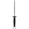 - CAUTION: KEEP STABLE WHEN SHARPENING. USE WITH STRAIGHT-EDGED KNIVES ONLY. NOT FOR USE WITH SERRATED BLADES. SHARPEN KNIFE BEFORE EACH USE TO MAINTAIN THE SHARP EDGE. TO PROPERLY SHARPEN THE KNIFE, HOLD IT AT A 20° ANGLE AND DRAW THE BLADE ACROSS THE STEEL. NEVER STROKE THE SAME SIDE OR BLADE MORE THAN ONCE IN A ROW.