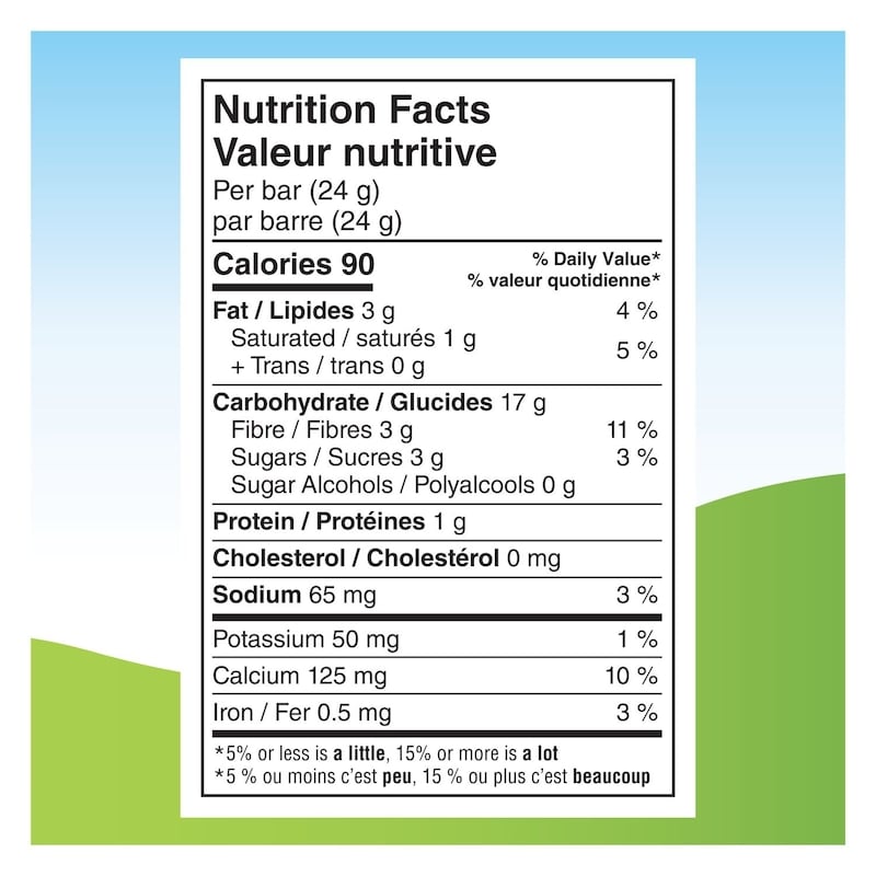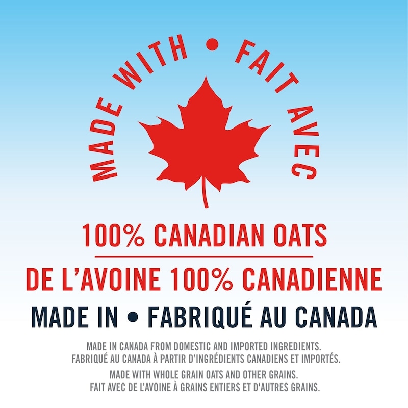 - Made In Canada — Our Quaker Low Sugar Chewy granola bars are made with 100% whole grain Canadian oats and other grains; made in a peanut-free facility; contains 10 g of whole grains per 24 g bar; source of fibre.