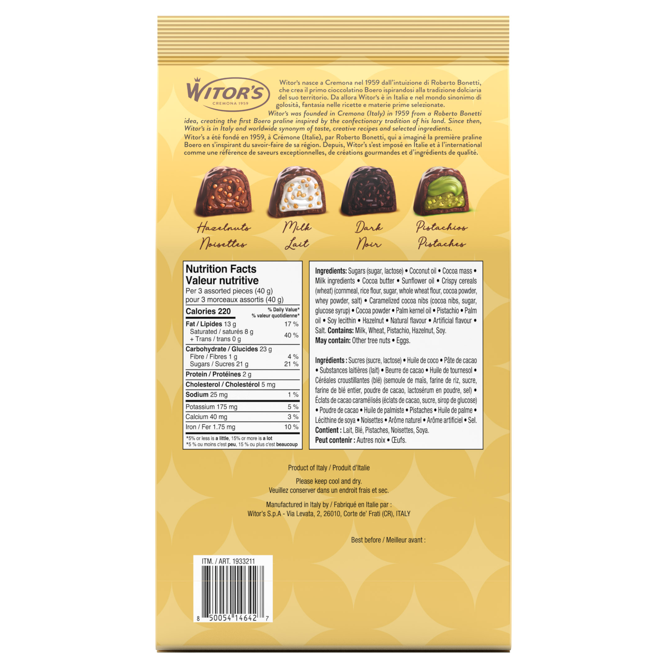 Witor's Italian Truffle is a selection of milk and dark chocolate pralines with assorted fillings: hazelnut, milk, dark and pistachio. Family size pack of 1 kg, ideal for sharing on any occasion. An irresistible mix of all-Italian flavours.