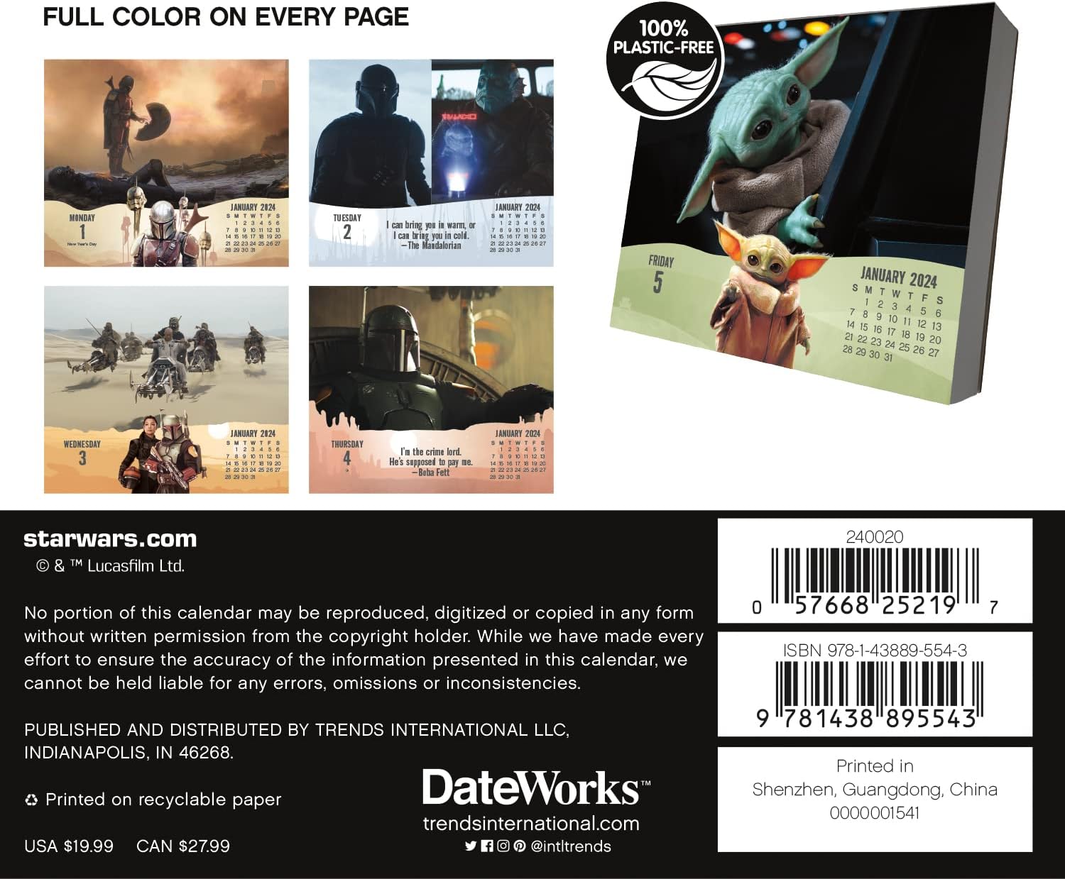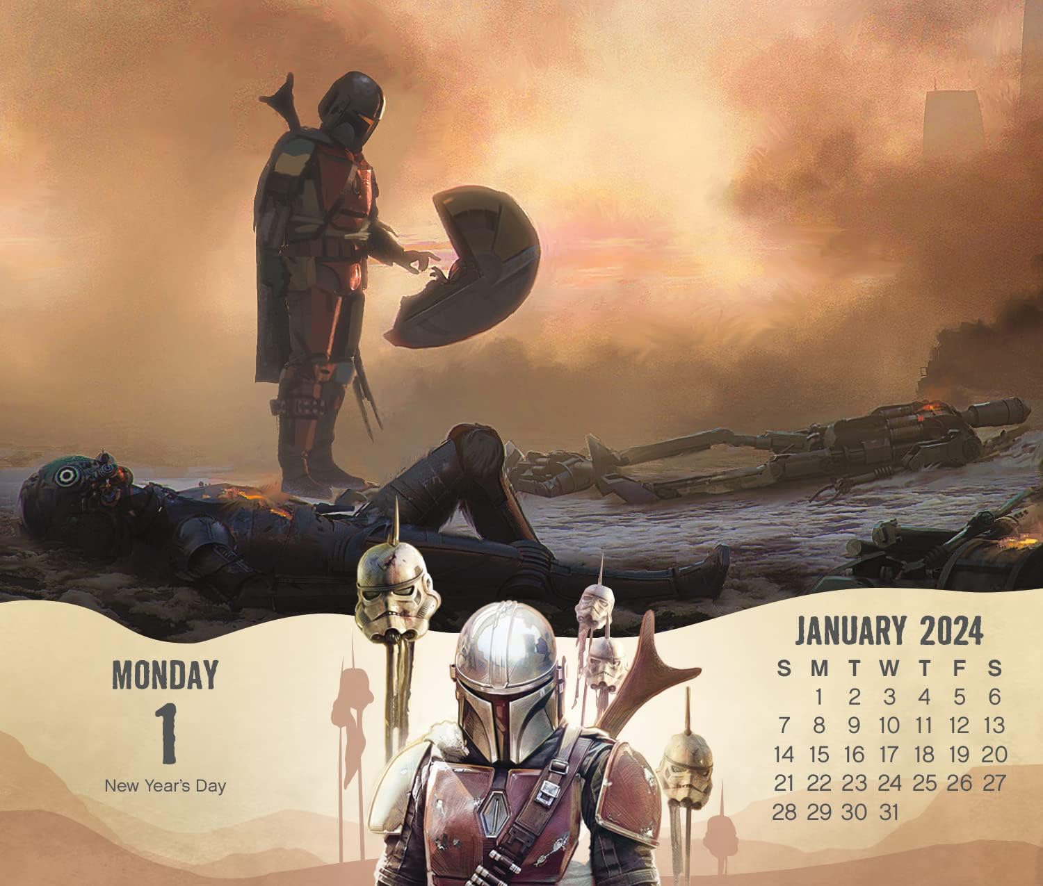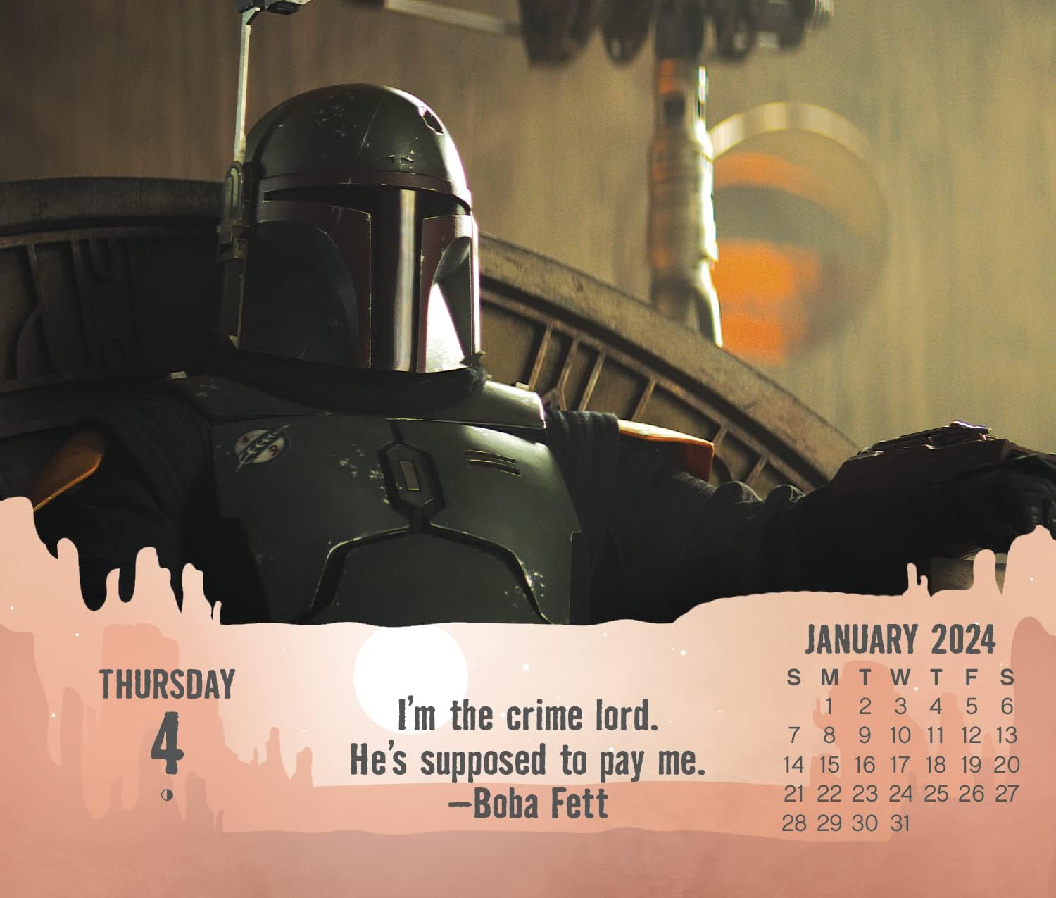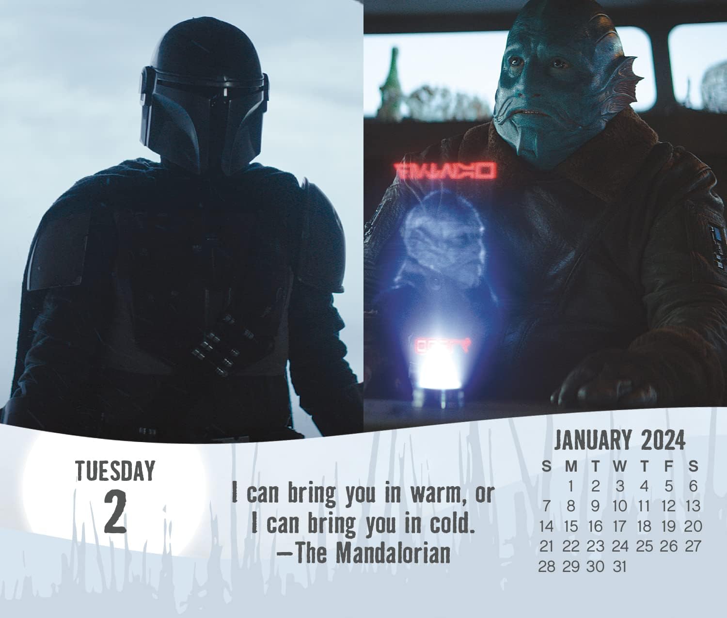 - This 2024 Star Wars: The Mandalorian Day-at-a-Time Box Calendar features full-color, tear-off pages with unique content on every page