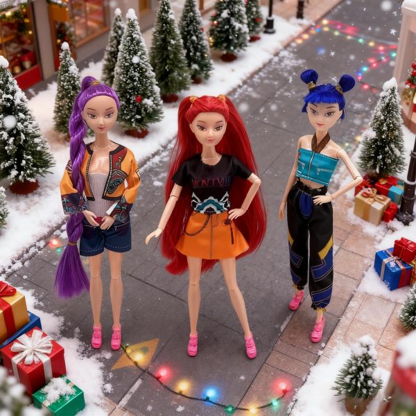 2025 New Kpop Demon Doll Figurine Set with Trendy Outfits, for Kids Girls Christmas Decorations Gifts (Multicolor-3PCS)