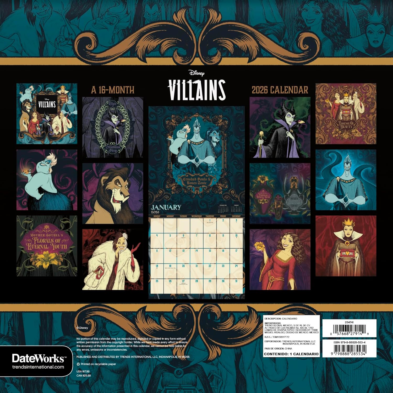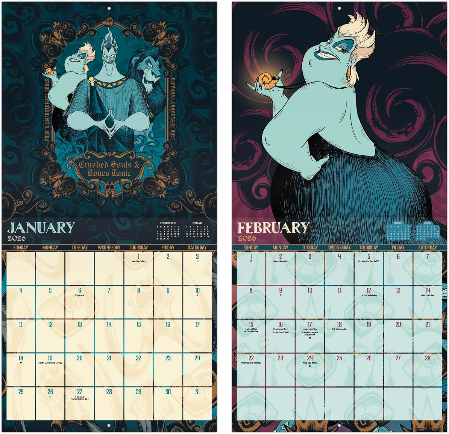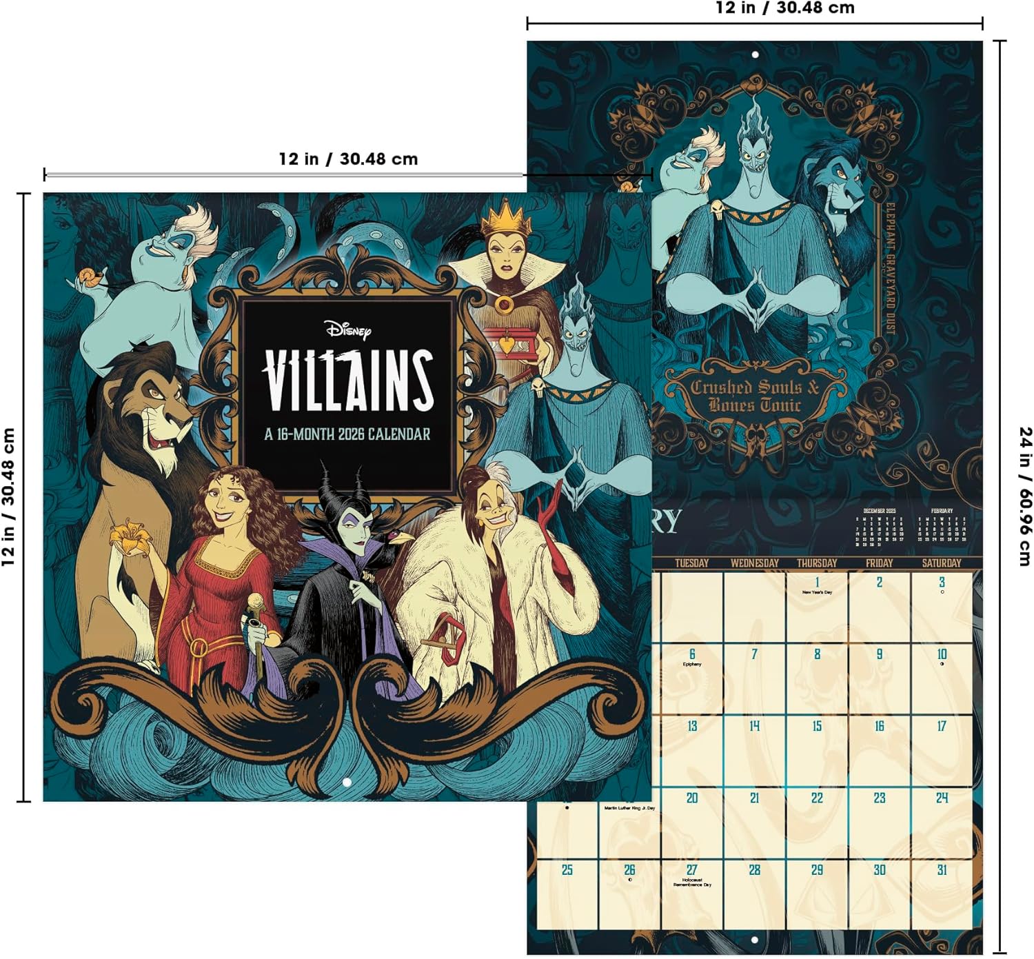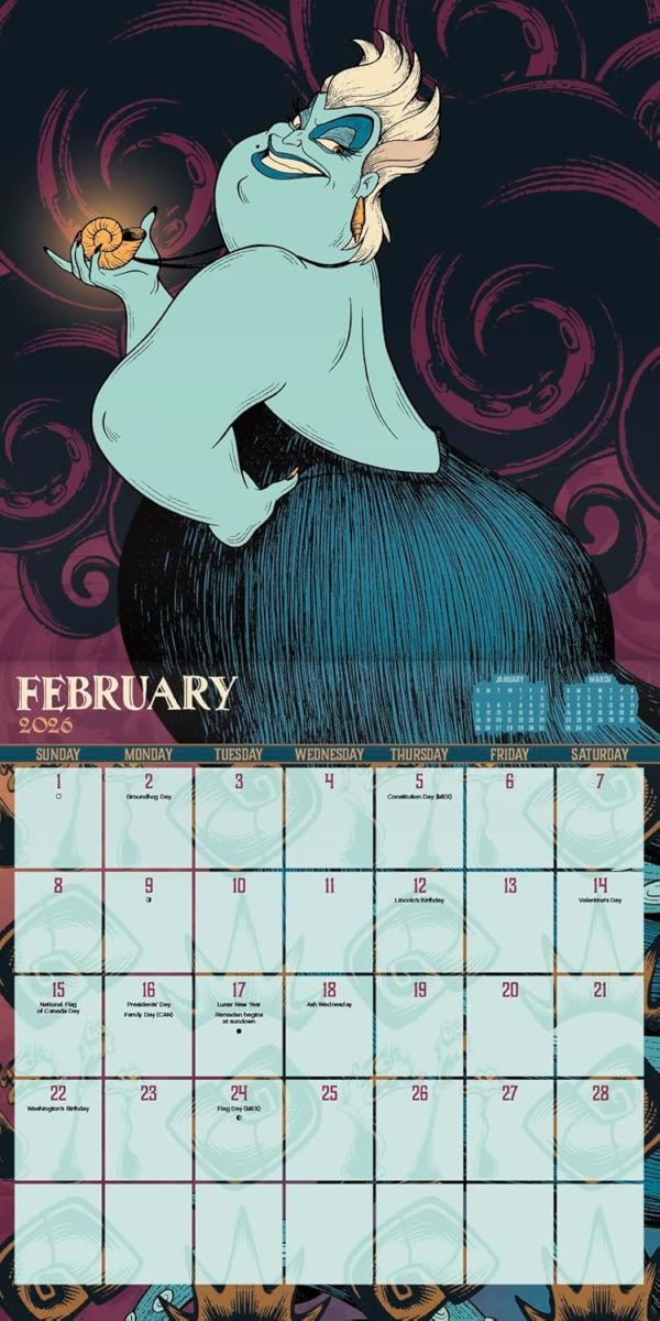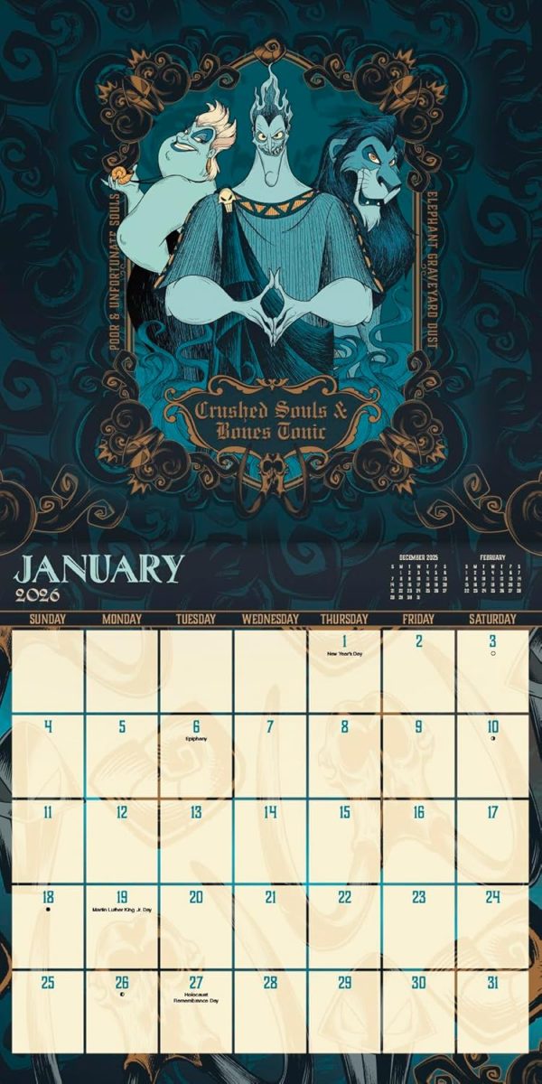 - This 2026 Disney Villains Wall Calendar features monthly pages for January to December 2026, as well as the last 4 months of 2025