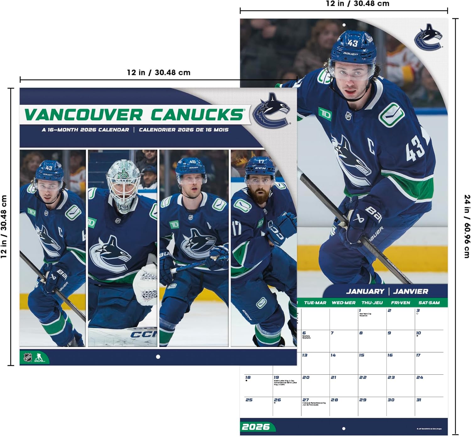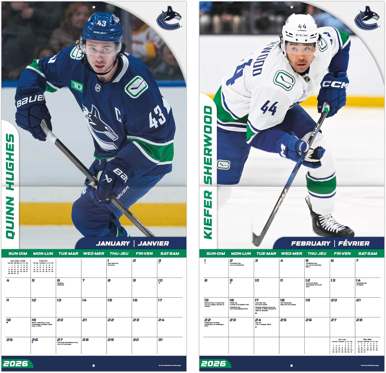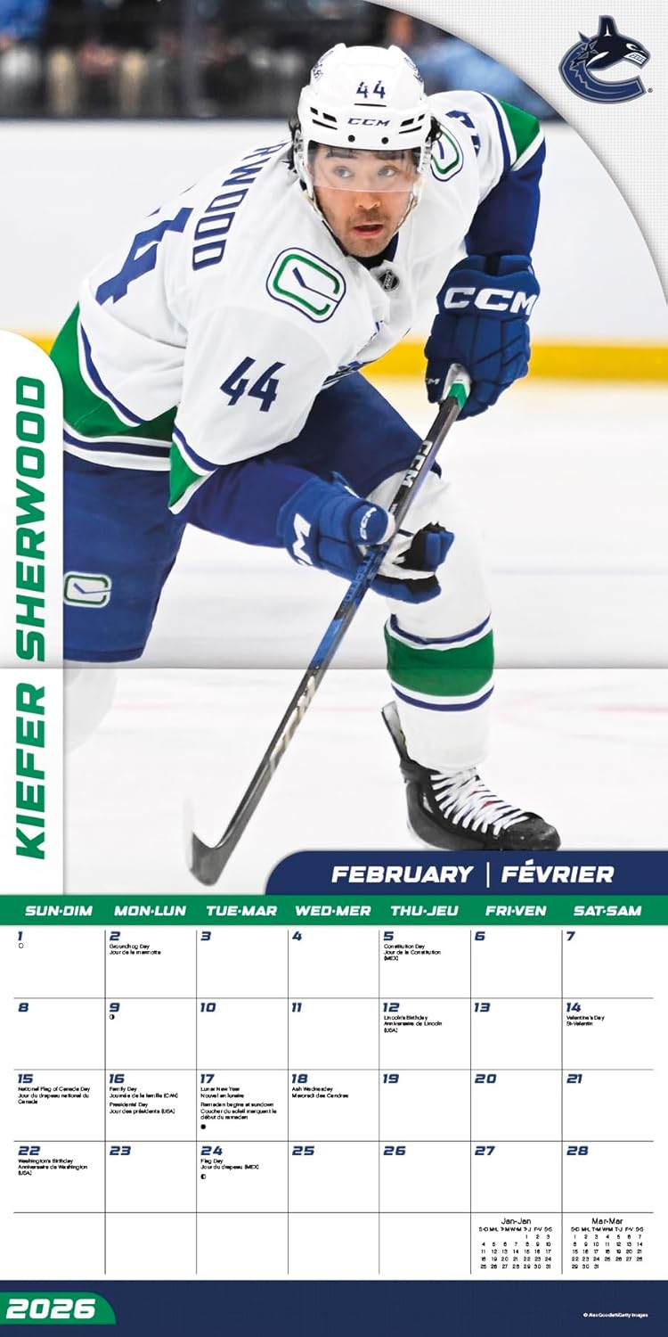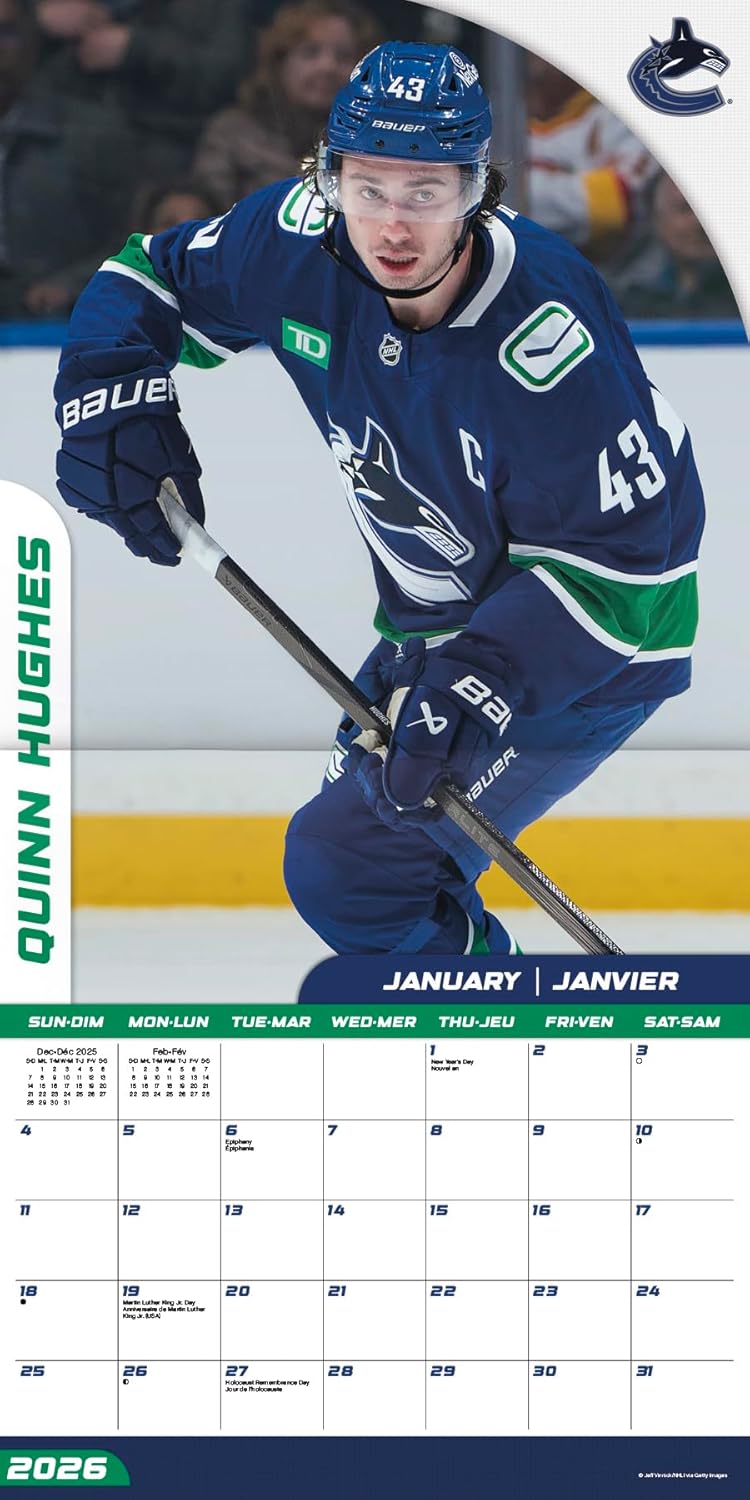 - This 2026 Vancouver Canucks (Bilingual French) Wall Calendar features monthly pages for January to December 2026, as well as the last 4 months of 2025