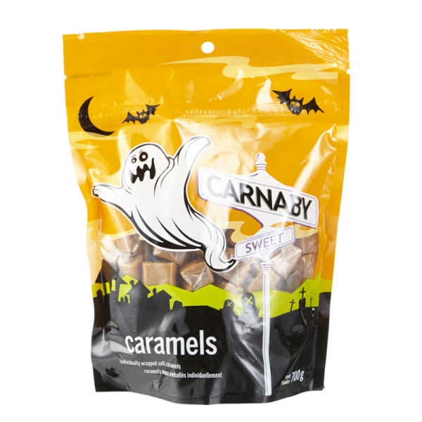 A resealable bag of Caramels is great for sharing at Halloween or anytime. It comes with individually-wrapped soft caramels with a chewy texture.
