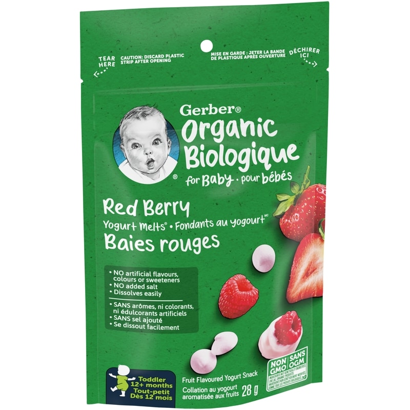 - Perfect Toddler Yogurt Snack — GERBER Organic YOGURT MELTS are designed to be nutritious and delicious, made with real organic yogurt and fruit, with NO artificial flavours, colours or sweeteners