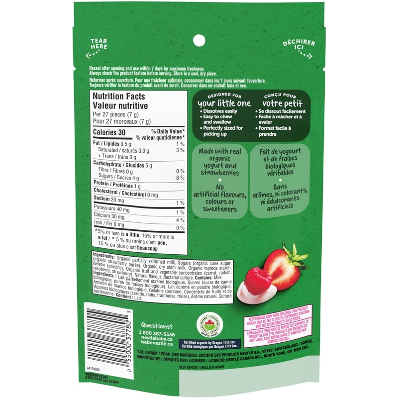 - GERBER Organic YOGURT MELTS are a source of calcium, which helps build strong bones and teeth