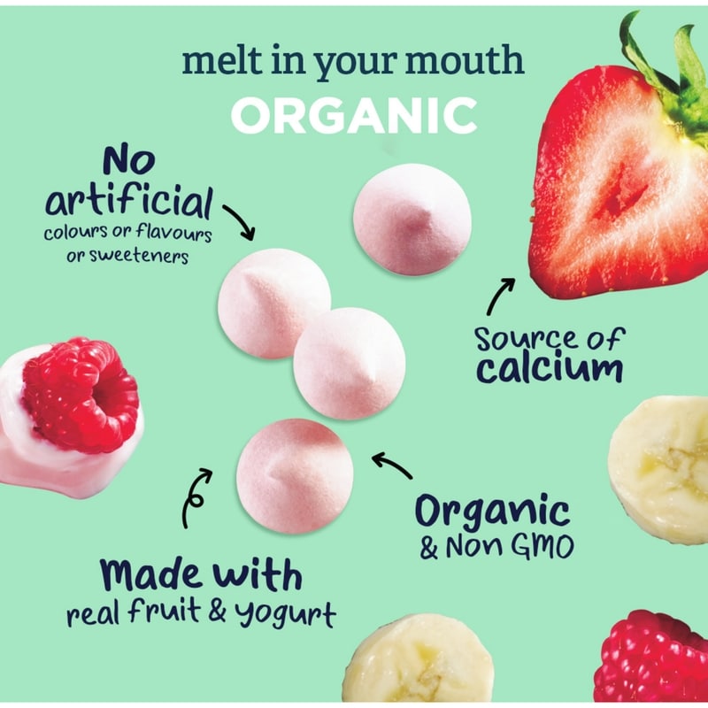 - GERBER Organic YOGURT MELTS dissolve easily, are easy to chew and swallow