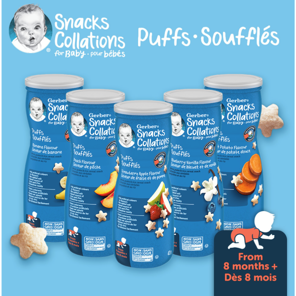 - Perfect for baby’s first finger food snack — GERBER PUFFS dissolve easily (they are melt-in-your-mouth good) and are nutritious, with no artificial colours or flavours