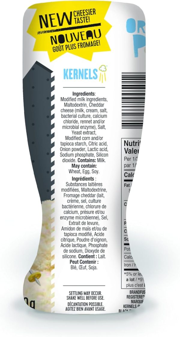 Kernels Popcorn Seasoning White Cheddar Flavor 110 grams, delivers a rich, creamy, and savory flavor that turns every bite into a gourmet experience. Specially designed to coat popcorn evenly, this seasoning brings the irresistible taste of white cheddar with a perfectly smooth texture. Packaged in a convenient bottle, it stays fresh and ready to add a cheesy touch to your favorite snacks.